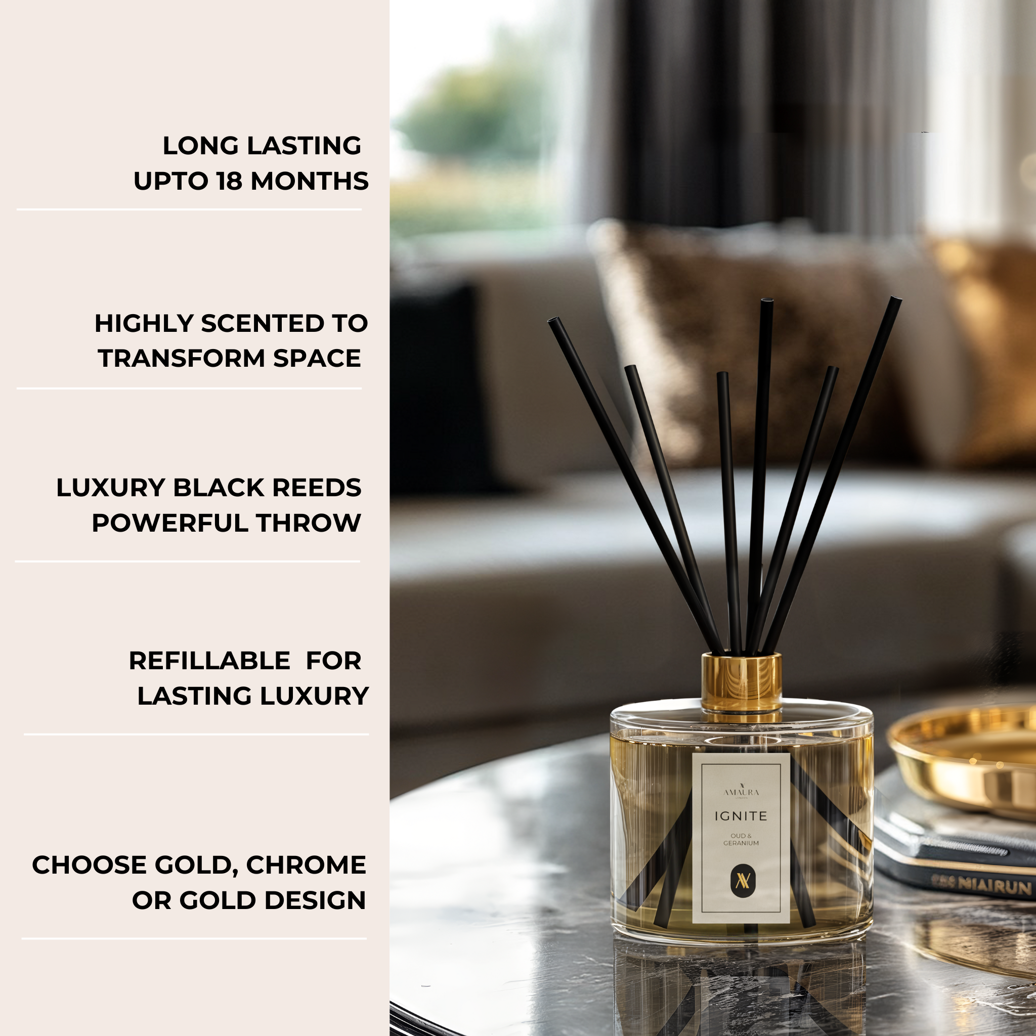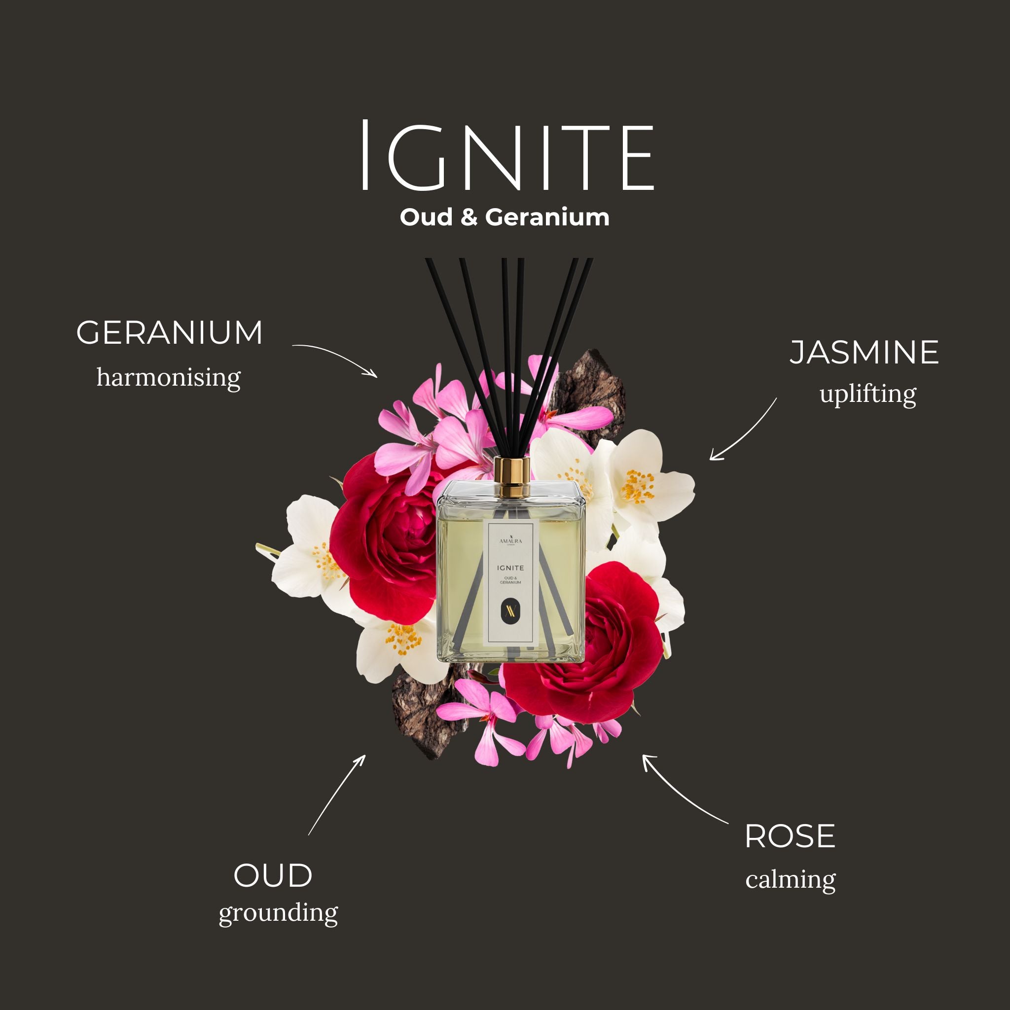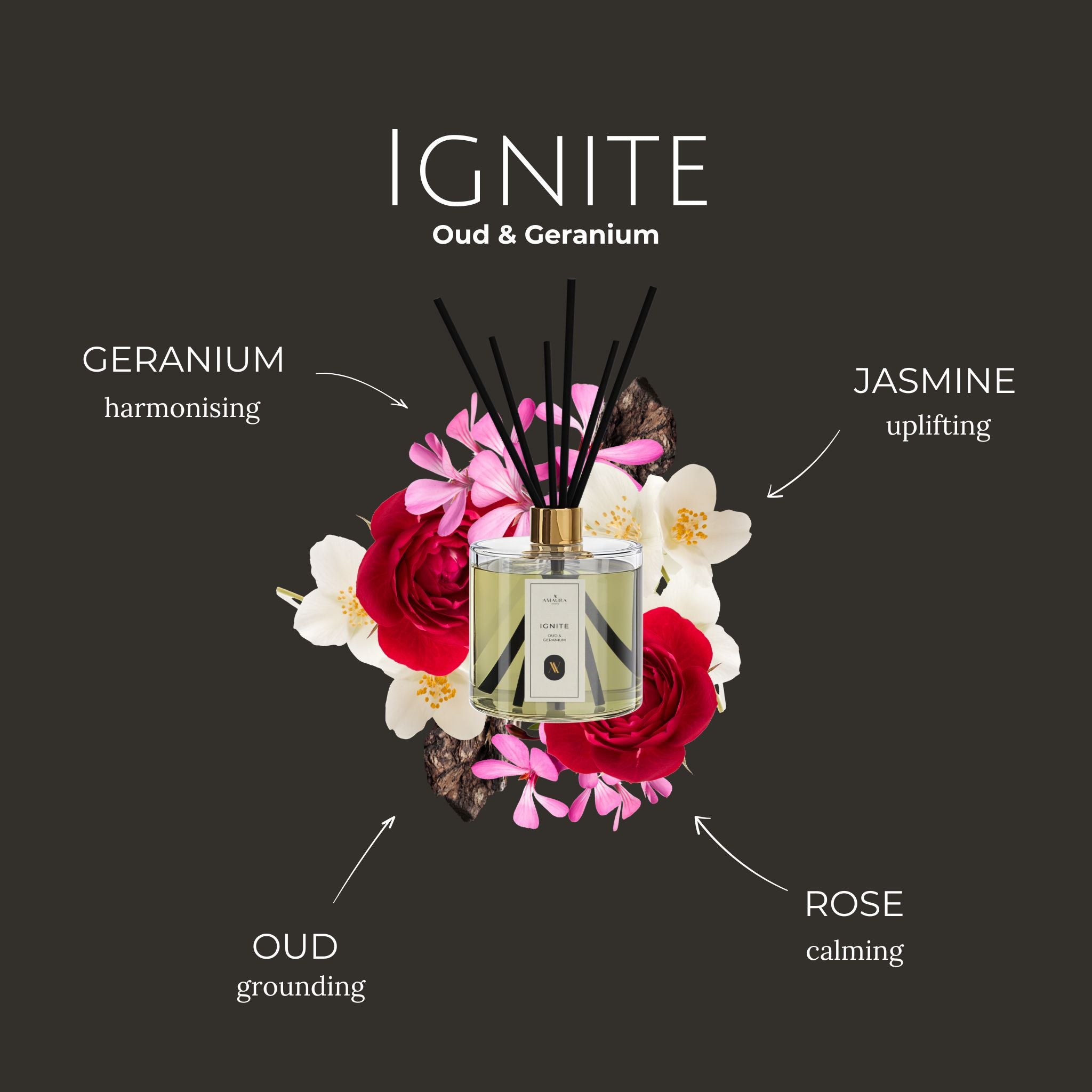 Ignite - Luxury Reed Diffuser | Oud & Geranium | 1 Litre