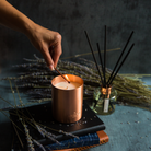 Calming Candle: At the heart of this luxurious set is our calming copper candle, delicately infused with soothing lavender, warm sandalwood, and rich amber. Light this candle to create a serene ambience, perfect for unwinding after a long day, meditating, or simply enjoying a moment of peace.