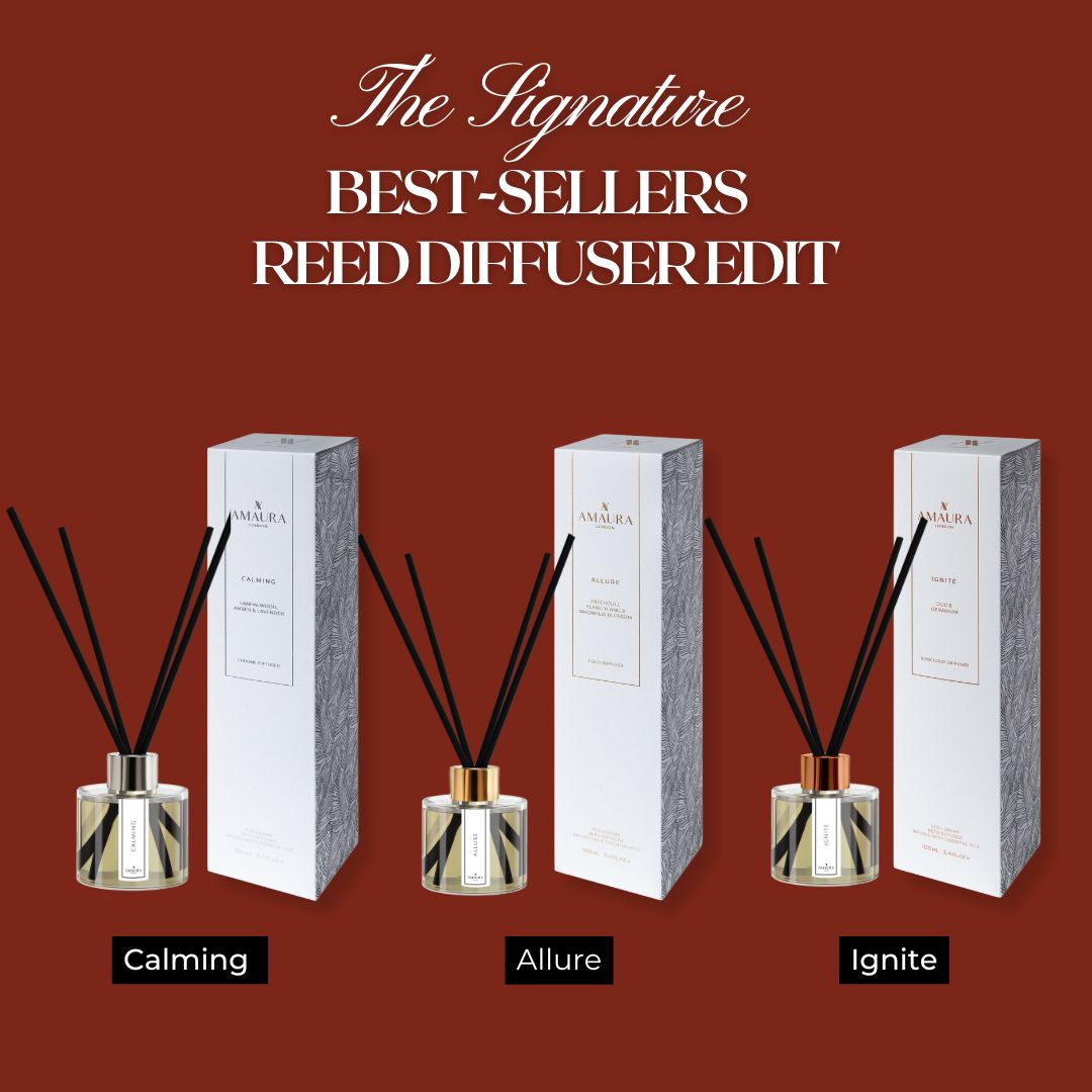 Elevate your home fragrance ritual with this curated trio of Amaura London’s most beloved reed diffusers—Ignite, Allure and Calming—each housed in your choice of Rose Gold, Gold or Chrome finish. Together they create an immersive sensory journey: rich luxury, serene floral elegance and deep relaxation, all in one beautifully refined collection.